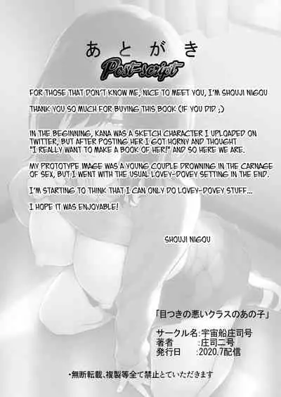 Metsuki no Warui Class no Anoko Hentai Porn [宇宙船庄司号 (庄司二号)] 目つきの悪いクラスのあの子 [英訳]